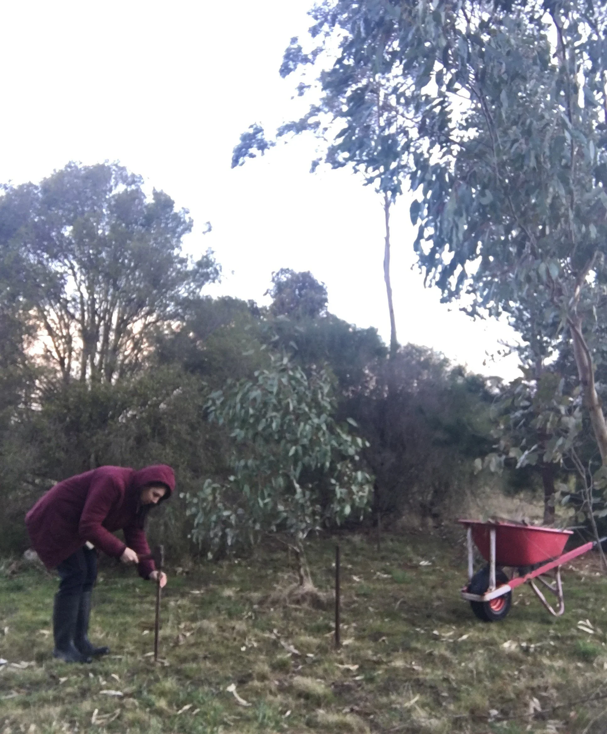 Reforesting the front paddock with local eucalyptus trees and local native shrubs, 2018.